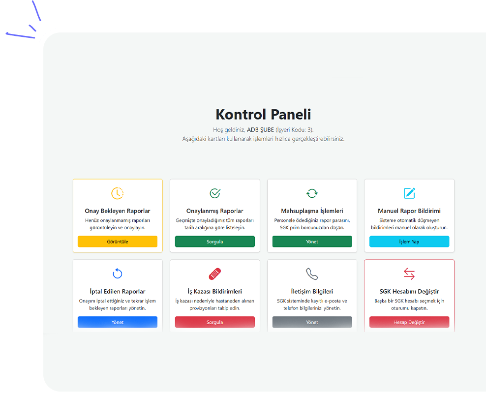 “Tüm personelinizin SGK rapor ve vizite işlemleri, SMS Doğrulaması Gerektirmeyen tek platformda, sizin kontrolünüzde.”
